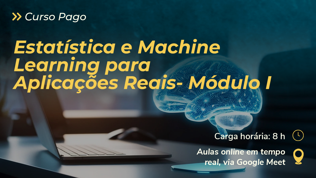 Público alvo: O curso Estatística e Machine Learning para Aplicações Reais é voltado para qualquer pessoa interessada em aprender a aplicar conceitos estatísticos e técnicas de machine learning em problemas do mundo real, tanto no mercado de trabalho quanto na pesquisa científica. Não é exigido nenhum conhecimento prévio em programação, estatística ou matemática avançada. O curso foi desenvolvido para que iniciantes possam acompanhar e absorver os conteúdos, ao mesmo tempo em que oferece aplicações práticas e relevantes que são úteis para profissionais de diversas áreas, como administração, engenharia, saúde, economia, marketing, ciência de dados e pesquisa acadêmica. O público-alvo inclui estudantes, profissionais, pesquisadores ou qualquer pessoa que queira desenvolver habilidades analíticas e quantitativas, compreender modelos estatísticos e de aprendizado de máquina, interpretar resultados e tomar decisões baseadas em dados.