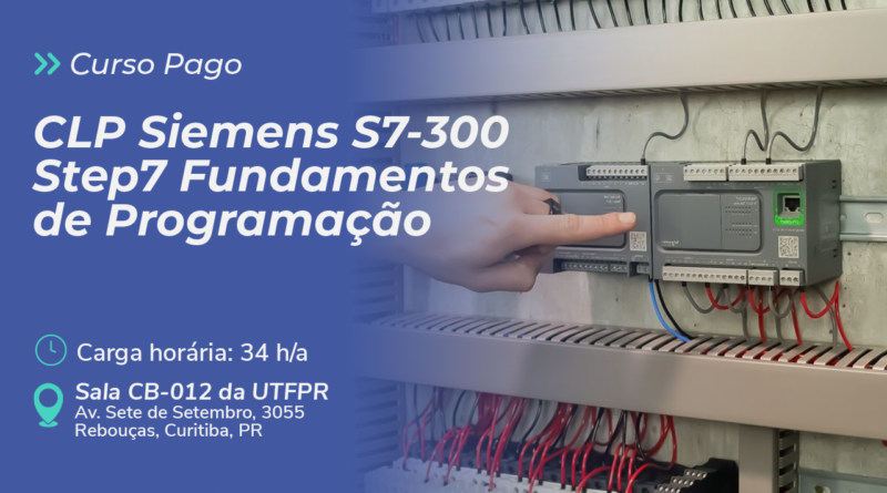 Read MoreCurso: 26.007 – CLP Siemens S7-300 Step7 Fundamentos de Programação Carga horária: 34 h/a Local: UTFPR Sede Centro, Laboratório CB-012, Bloco Central B Vagas: 16