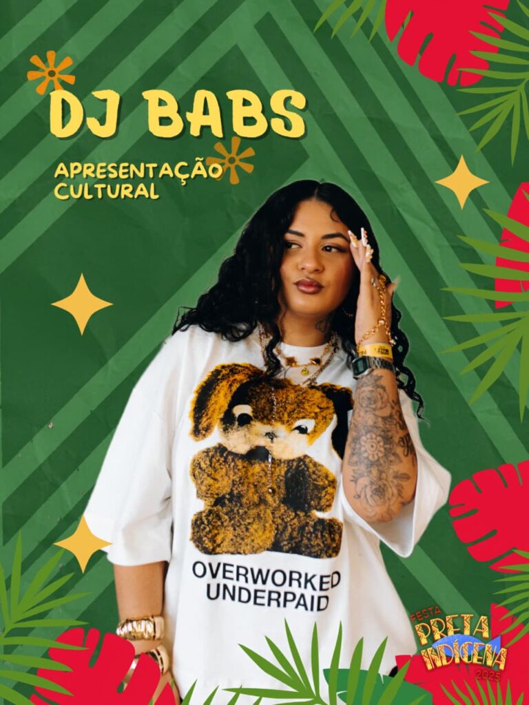 A Festa Preta-Indígena 2025 vai tremer com o set vibrante da DJ Babs, estudante da UTFPR e uma das vozes mais potentes da cena musical curitibana! Com raízes no hip hop e domínio no turntablism, Babs chega com aquele open format cheio de groove, transitando entre rap, black music, brasilidades, funk, house, afrohouse, garage e muito mais, sempre entregando pista quente, técnica e conexão real com o público.