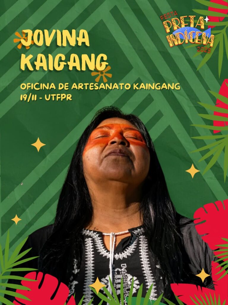 Com a ministrante Jovina Kaingang, liderança e educadora indígena, a Oficina de Artesanato Kaingang convida você a conhecer um pouco da arte tradicional do povo Kaingang por meio da confecção de colares e pulseiras com contas e sementes naturais. Uma vivência que une criatividade, cultura e ancestralidade, valorizando os saberes indígenas e o fazer manual como forma de expressão e identidade. Cada criação carrega o saber ancestral, a força das mulheres Kaingang e a conexão com a floresta, revelando a arte como expressão viva de um modo de existência.